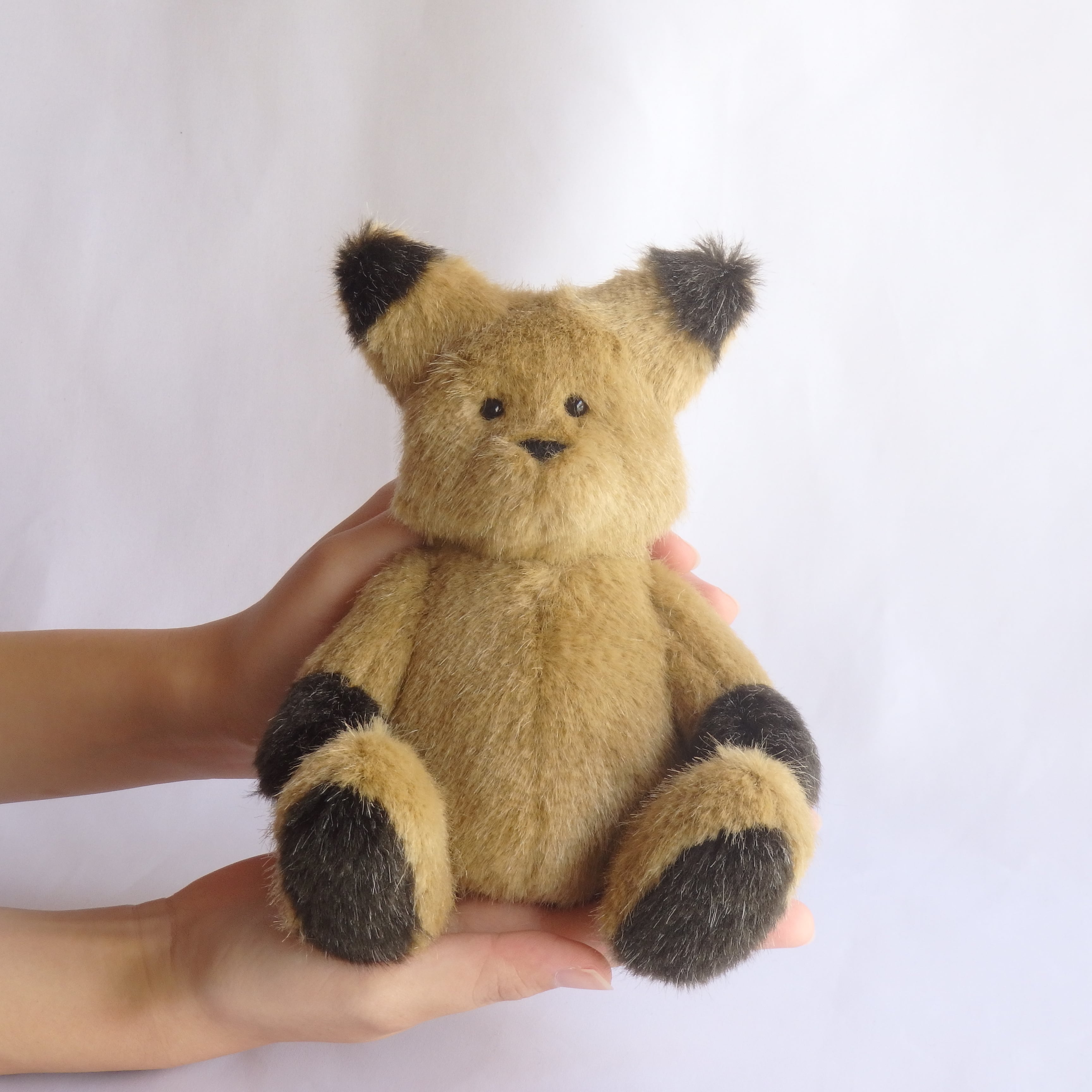 オリジナルの型紙からひとつひとつミシンと手縫いで丁寧に制作した一点物のぬいぐるみです。