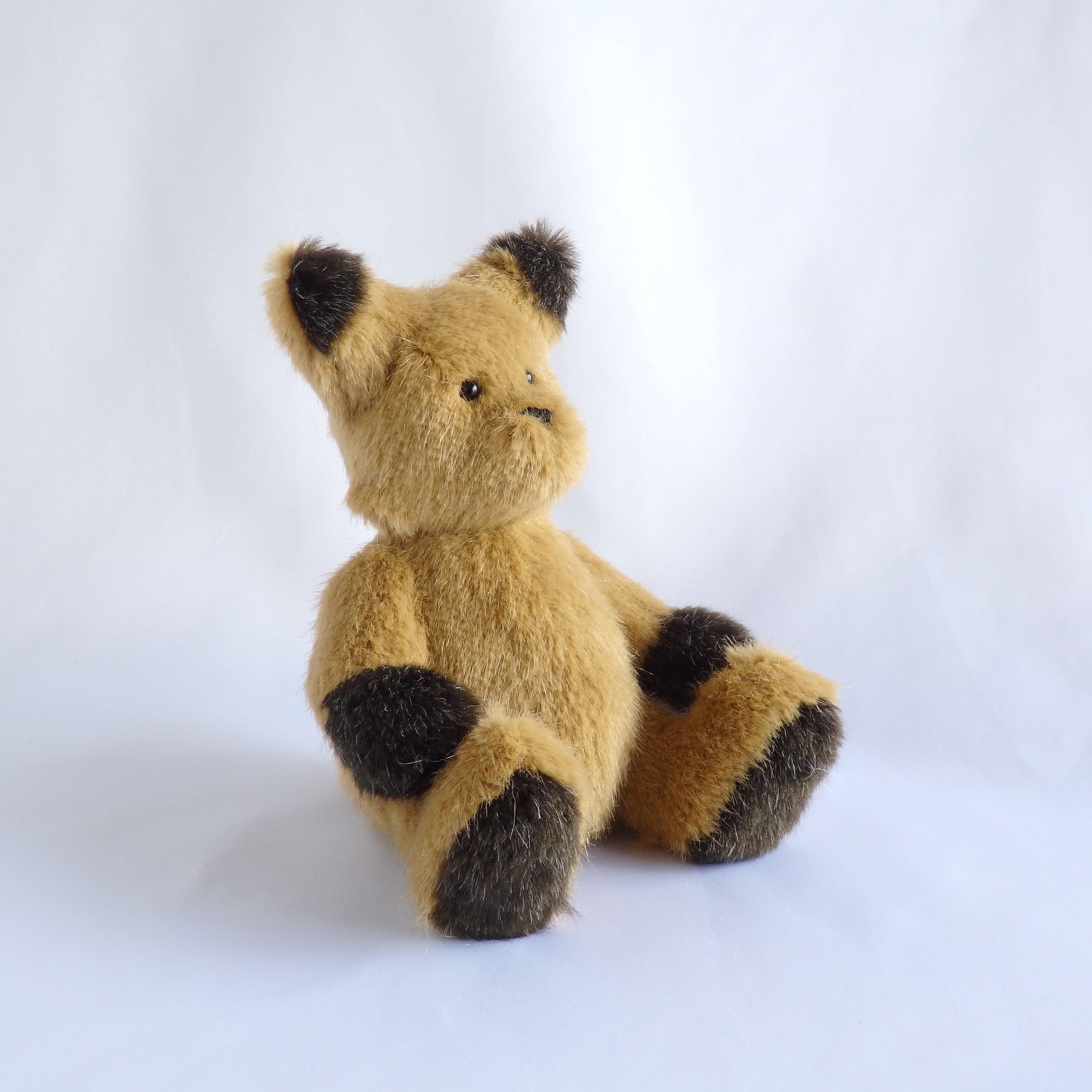 光に当たるとキラキラ光る生地で生まれたきつね。