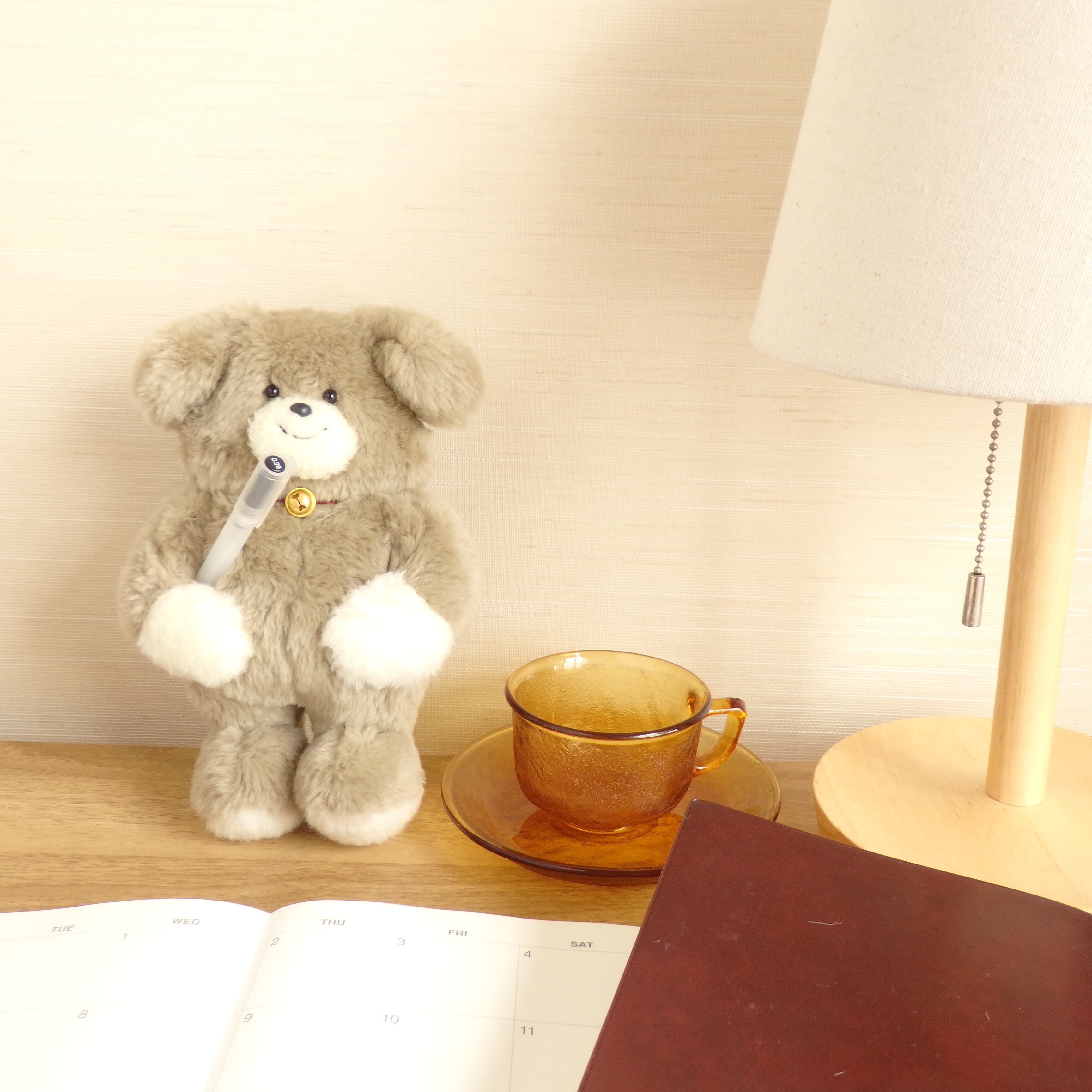 ・腕はおなかに縫い付けてあるので、隙間にペンなどを通して持たせることもできます