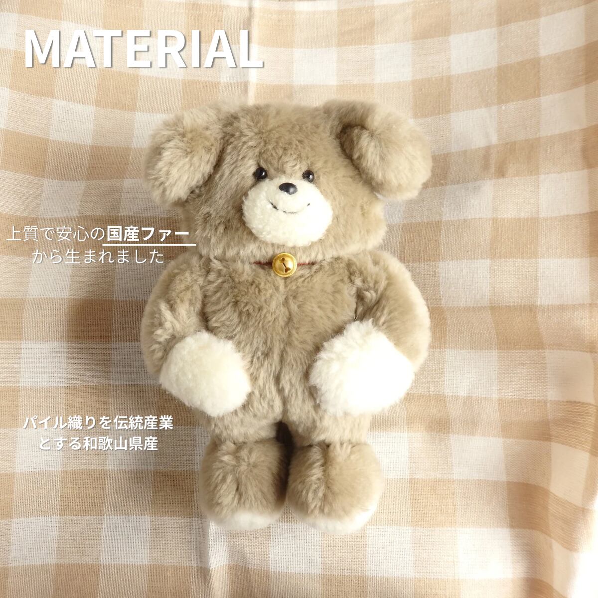 〈素材〉国産ファー生地、プラスチック目・鼻、ミシン糸、ワタ(内容物はワタのみ)